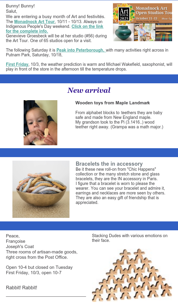 Joseph's Coat is a shopper's paradise in Peterborough, New Hampshire for those who value quality handcrafted items and their stories.